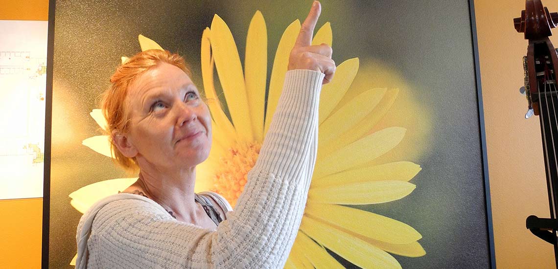 Det tredje tiltaket er bilder som festes til rammer med lydisolering. Ingjerd Aaraas viser oss flere vakre bilder som vil tjene både som fin dekorasjon i et rom og dempe lyd. Men hun påpeker at bilder alene ikke gir stor effekt.