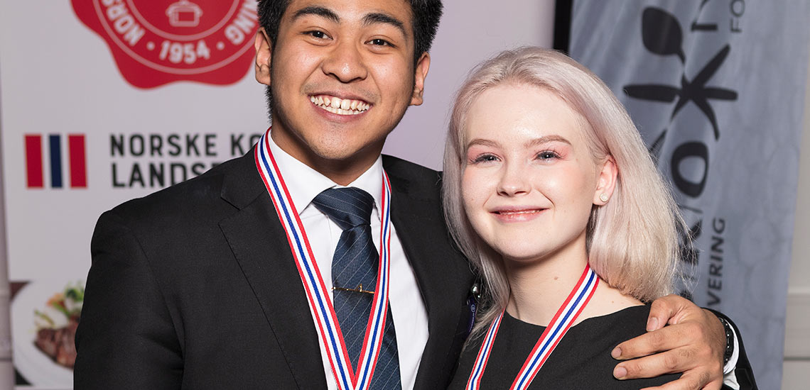 Førsteplassen i Norgescup for servitørlærlinger gikk til Therese Gjesti Friis som arbeider ved Oslo Militære Samfund, og Bryan-Matthew Santos fra Brasserie France.