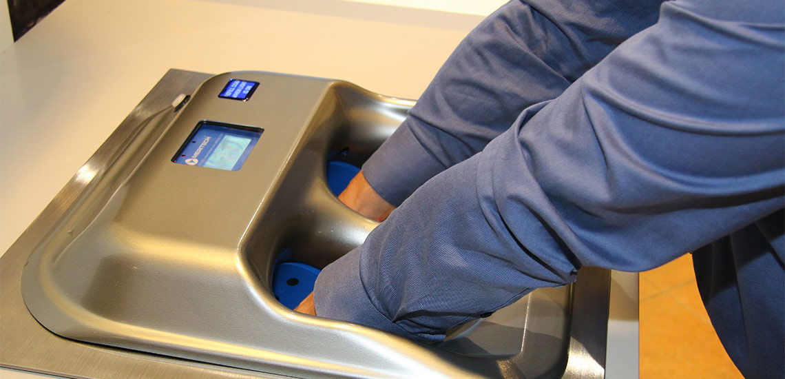 - Cleantech er en 100 % berøringsfri maskin som bidrar til markant bedre håndhygiene i forhold til en ordinær håndvask. Enkelt forklart sikrer 40 dyser i ulike vinkler og forskjellig styrke at du blir ren på hendene i løpet av 12 sekunder, sier Lööv-Olsen.