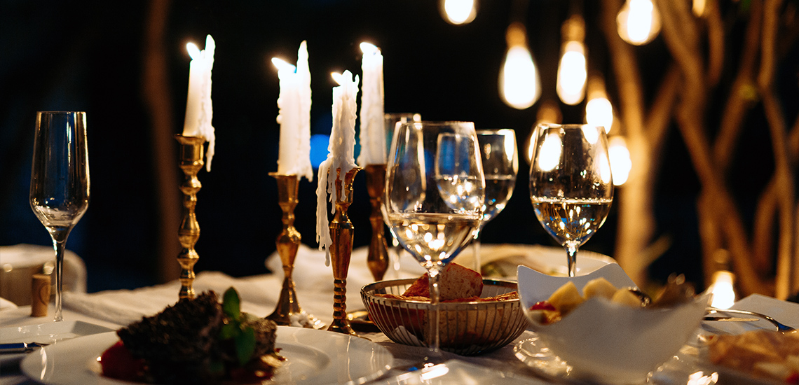 Dempet belysning er romantisk og skaper god stemning. Selv om man kan risikere å ofre noe av smaken på maten, skaper dempet belysning en hyggelig atmosfære som gjør at gjestene slapper bedre av og har lyst til å bli værende i restauranten lenger. Dempet belysning gjør også at man får litt mer privatliv, fordi man ikke ser alt som foregår på nabobordene. Og når man spiser ute, handler det om mer enn bare maten – det handler også om stemningen, selskapet og atmosfæren. Når restauranter skal velge en belysning, handler det altså om å finne en balansegang mellom å få så god smak på maten som mulig, men også skape en god atmosfære som folk trives i.