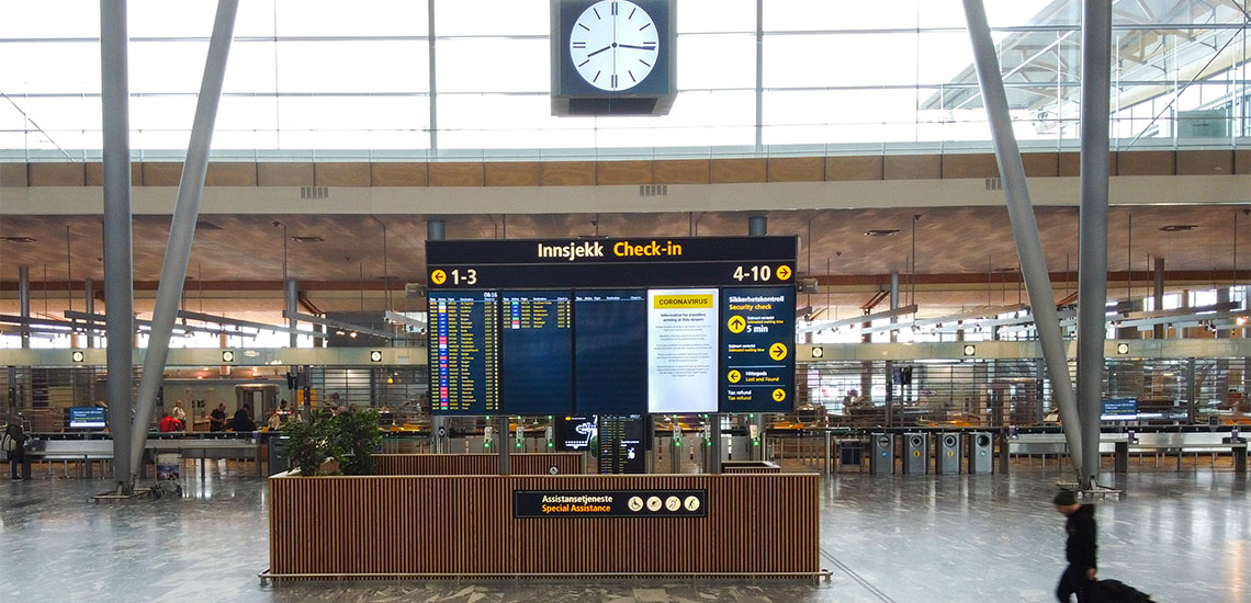 Totalt reiste 20 millioner passasjerer gjennom Avinors lufthavner i 2020. Det er en nedgang på 63 prosent sammenlignet med 2019.