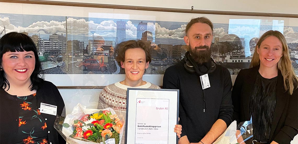 Vi har tidligere omtalt bedriften Gruten AS i SMAKmagasinet. Selskapets forretningside er å skape nye verdier av kaffeavfall og bidra til økt bevissthet rundt denne ressursen. Nylig mottok Gruten AS med Bedriftsutviklingsprisen i landbruket for Oslo.