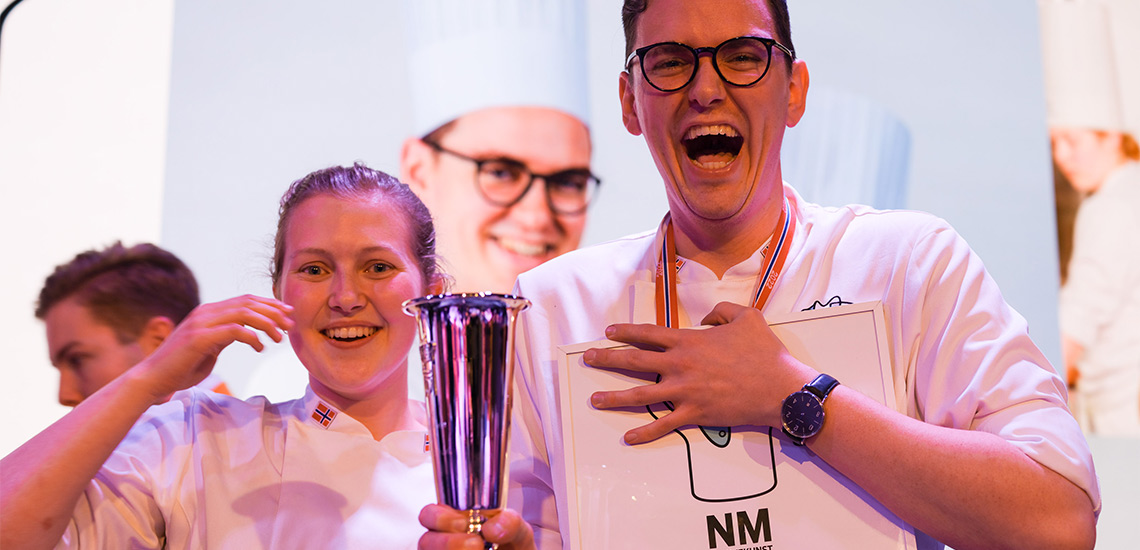 Nils Flatmark, Britannia Hotel i Trondheim, vant NM I KOKKEKUNST og Magne Gaut, Le Bistro i Trondheim, vant NM I SERVITØRFAG.