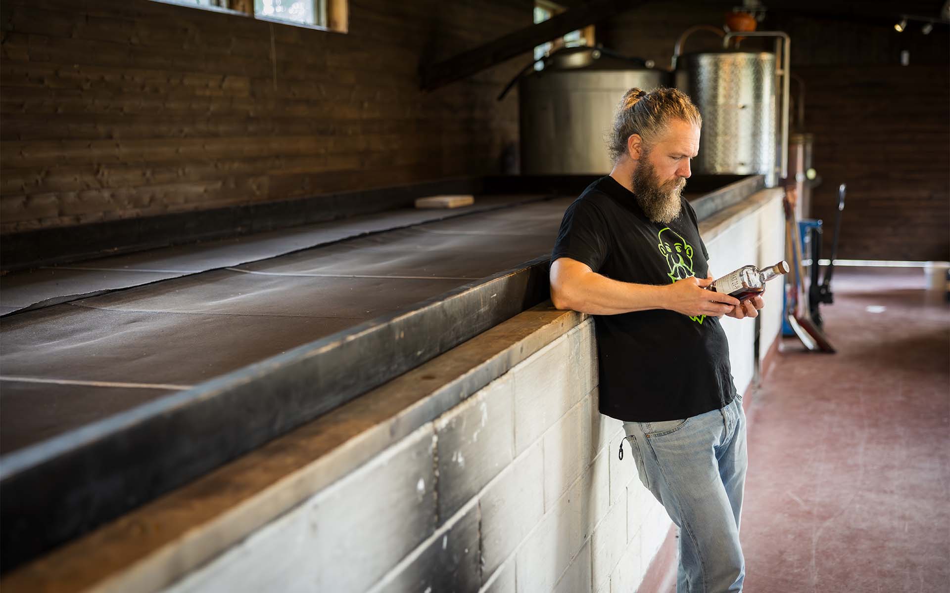 – Det som er litt unikt, er at vi lager maltet selv, forklarer Jørn. – Vi lager det på gamlemåten med einer, slik tradisjonen har vært i Stjørdal fra uminnelige tider.