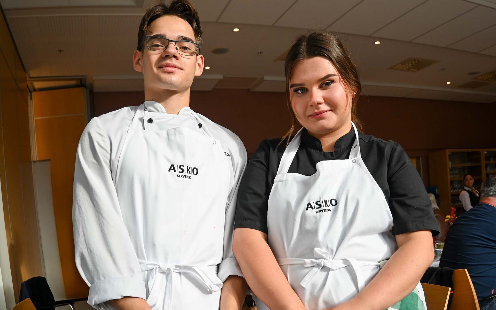 Når gjestene ankommer, viser servitørlærlingene dem til bord som de har nydelig dekorert etter høsttema – alt fra mose til perfekt brettede servietter.