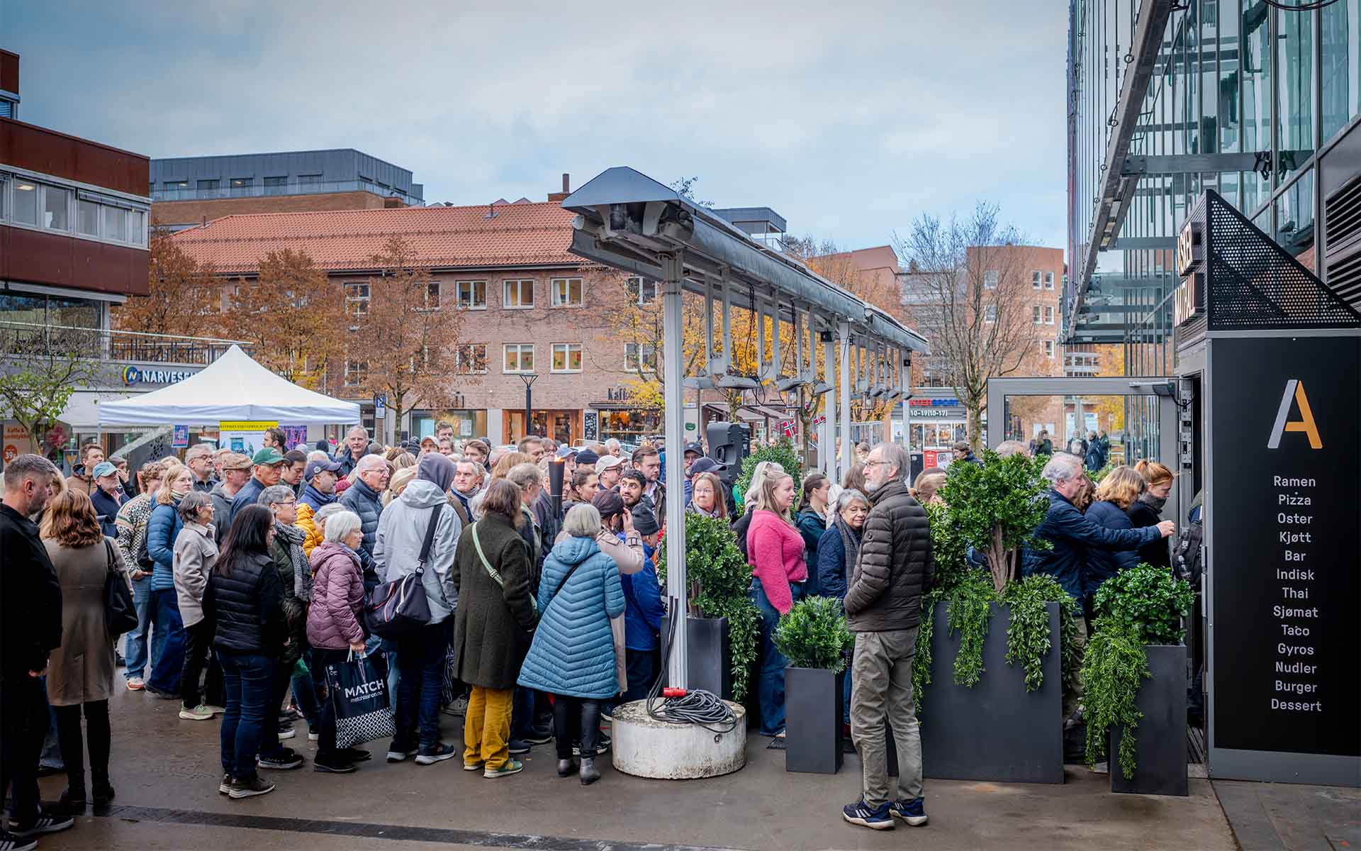 Flere tusen besøkende var innom Asker Mathall på åpningsdagen. Det oser matglede og vrimler av folk. Omsetningen endte på rundt en halv million kroner.