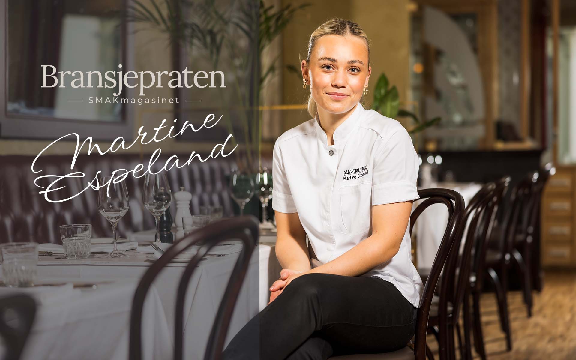 Martine Espeland er en av Norges fremste dessertkokker. 25-åringen flyttet til Oslo da hun var 18, og har siden den tid markert seg både på tallerkenen og i internasjonale konkurranser. Hun har flere sølvmedaljer i sekken, og skrev historie da hun tok gull i Global Pastry Chef i februar – som første nordmann noensinne. Dette gjør henne til en av landets mest meritterte unge kokker.